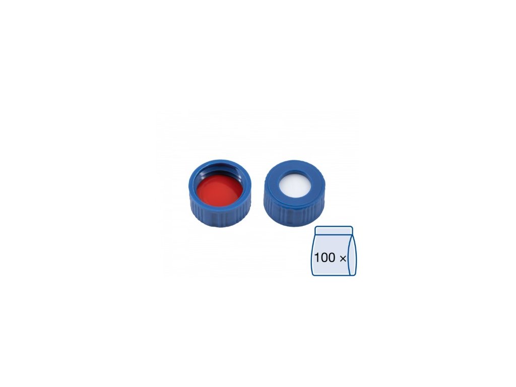Uzáver N 9 PP, screw cap, blue, center hole, Silicone white/PTFE red, 1.0 mm, 100ks 702287.1